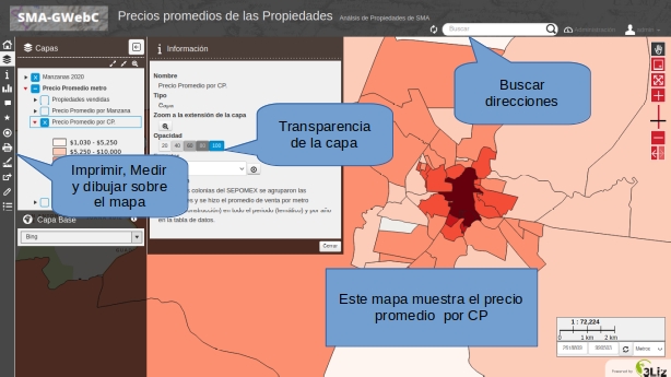 - Venta de Propiedades: Se puede consultar un mapa de calor de las compra/venta de propiedades, El precio promedio por colonia, CP y AGEB así como el incremento que se ha dado desde 2017.
