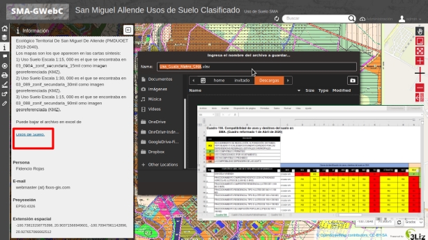 6) Puede descargar información adicional como la tabla de usos de suelo de SMA en formato Excel.